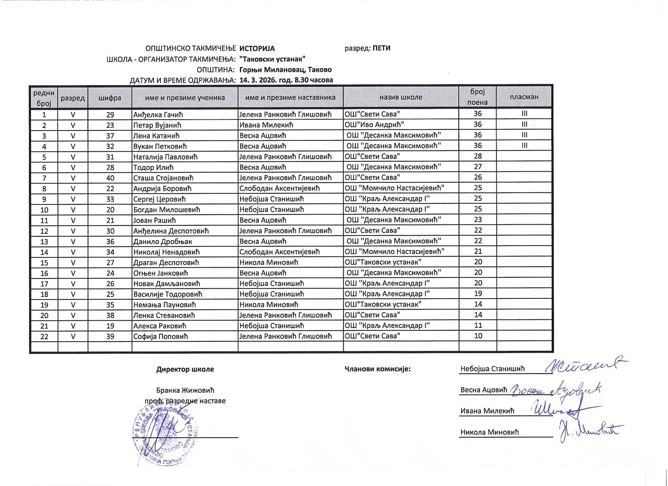 Opštinsko takmičenje iz istorije
